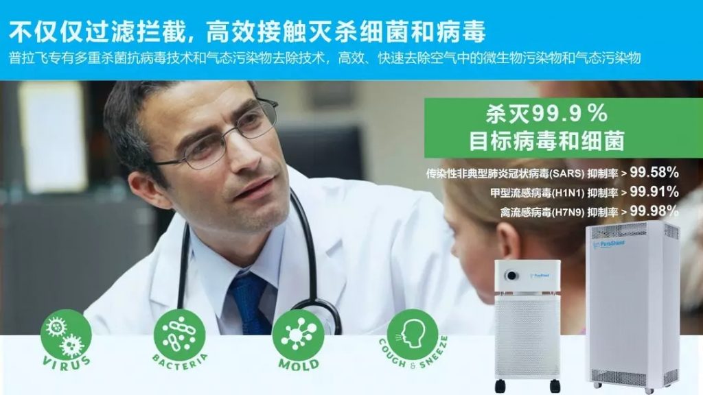 普拉飞杀菌抗病毒空气净化器核心:双重细菌病毒杀灭技术,确保真正杀灭细菌和病毒。