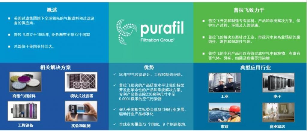 美国普拉飞,全球气相过滤技术的领先者,成立于1969年,提供洁净空气、除臭、关键设备腐蚀控制、改善室内空气品质等一系列产品和系统解决方案,保护生产过程、环境及人的健康。